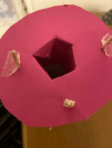2 Incastrare il palloncino in modo che vada a coprire uno dei due lati del rotolo avendo l’accortezza che il nodino rimanga al centro.