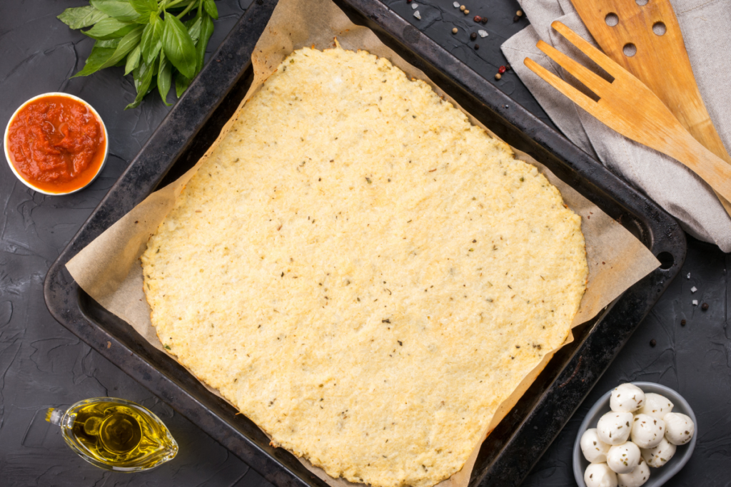 Scopri una nuova dimensione della pizza con questa versione a base di cavolfiore. Un impasto leggero e croccante, arricchito con albumi, formaggio e spezie, è la base perfetta per qualsiasi topping tu preferisca.