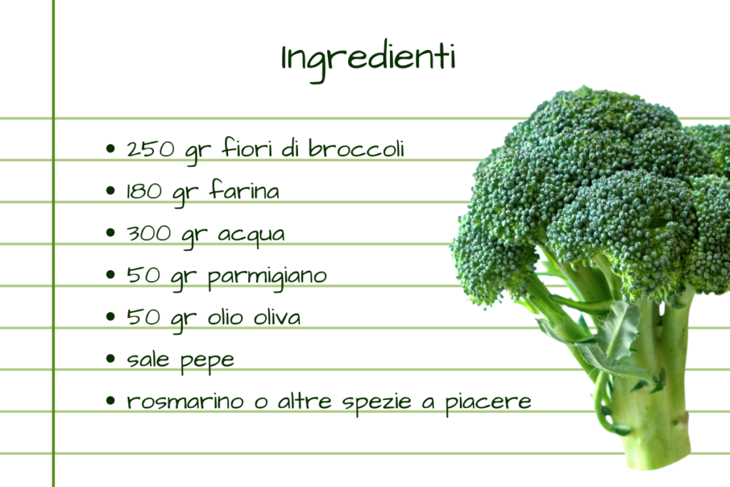 2 Mescolare bene farina e acqua (attenzione a non far formare grumi), olio, parmigiano, sale e pepe. Aggiungere poi i broccoli, senza ridurli in crema.