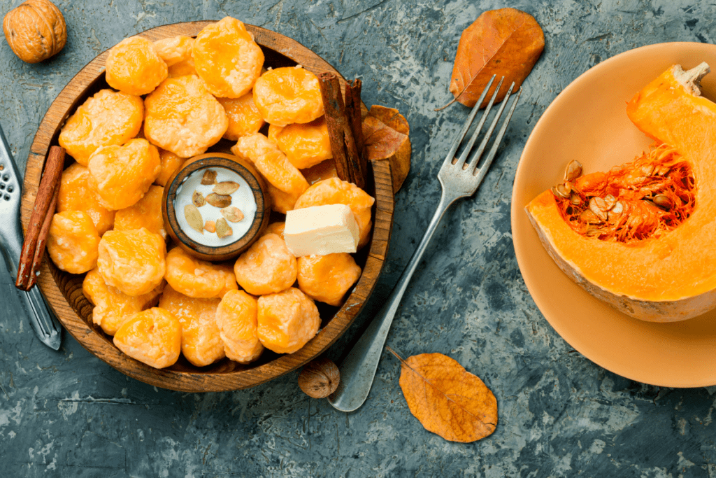 🎃Cuocere la zucca a fette in forno pa 180° per 40 minuti circa 🎃Schiacciarla con una forchetta, aggiungere l’uovo, sale, noce moscata e farina di riso quanto basta per farla addensare. 🎃Fatela raffreddare e poi fate dei rotolini e tagliare con il coltello.